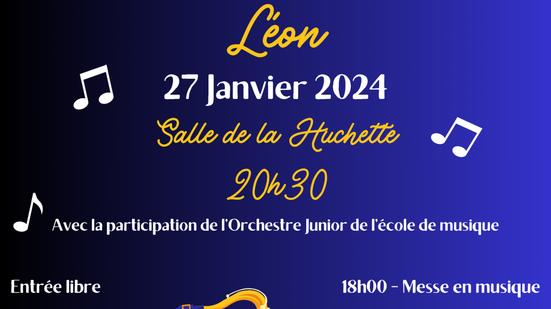 L’harmonie de Léon vous invite cordialement à son concert traditionnel de Sainte Cécile sous la direction de Pierre-Jean Caliot. La première partie du concert met à l’honneur l’orchestre junior que vous pourrez encourager vivement. Nos musiciennes et nos musiciens vous emmènent ensuite pour un beau voyage, très envoûtant et plein de souffle, dans l’univers infini des compositions et autres arrangements pour harmonie ... avec quelques belles surprises qui vous raviront. Comme chaque année, nous souhaitons vous proposer un programme de qualité, riche, varié, mêlant des accents de grande musique aux airs populaires les plus appréciés et les plus entraînants.